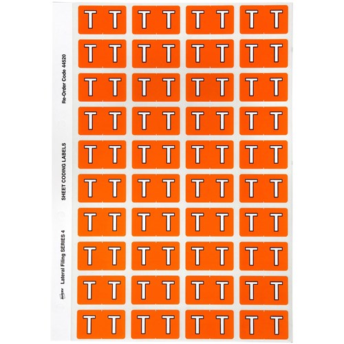 Avery Alphabet Coding Label T Side Tab 25x42mm Orange
