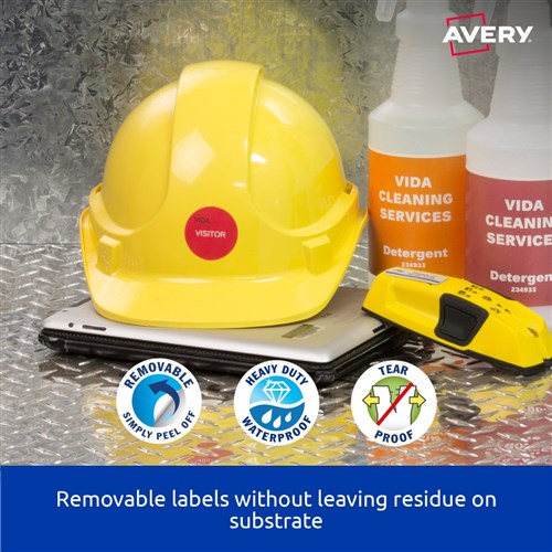 • Avery L4716 White 30mm Round Safety & Industrial Removable Heavy Duty Label