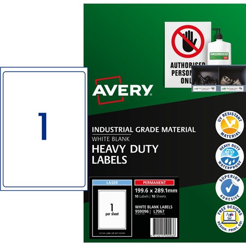 • Avery L7067 White 199.6x289.1mm Safety & Industrial Removable Heavy Duty La