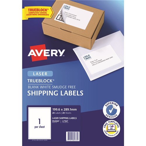 Avery Internet Shipping Labels L7167 1L/P/Sht 199.6X289.1mm 524532 In Stock Low Stock Low Stock Please See Attributes