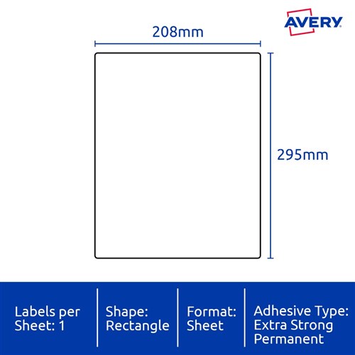 • Size: 208x295mm 10 labels, 10 sheets. 1 label per sheet (1UP).