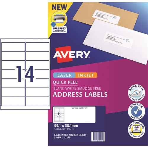 Avery L7163-20 99.1X38.1mm 14 P/Page Laser Address Labels 524470 In Stock Low Stock Low Stock Please See Attributes