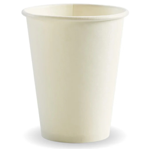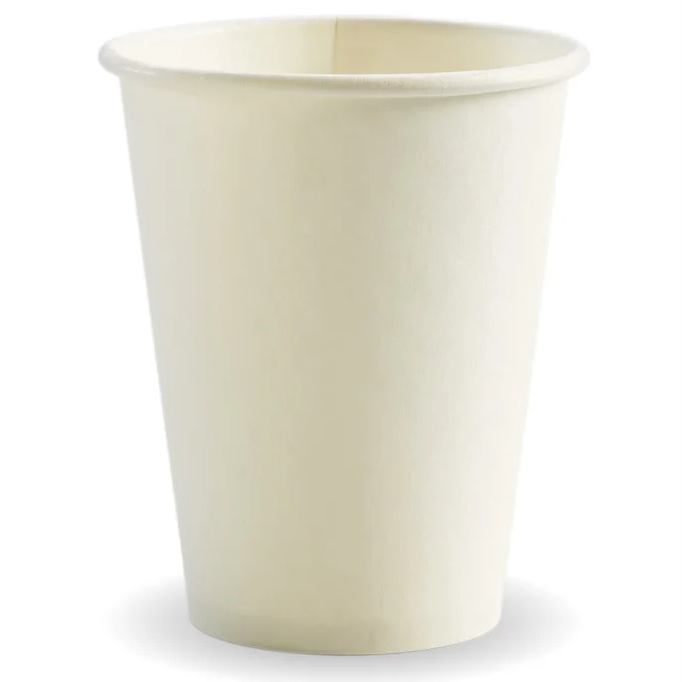 Paper BioCups are lined with a unique Aqueous dispersion coating. BioPak white paper cups are certified home and industrially compostable (AS5810 & AS4736). This 12oz (90mm) white cup fits our large lids.