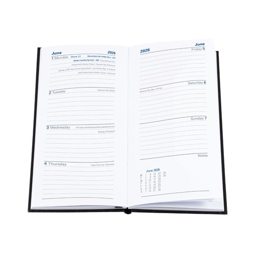 This sophisticated smooth leather-look diary comes complete with all of the features expected of a Collins diary including crisp, easy-to-read graphics, comprehensive information section and Australian, New Zealand and international holidays throughout. Features include: Australian and New Zealand capital city maps and holidays, 3-year calendars, current and forward year planners, international holiday list, international dialling guide, staff leave planner, addresses and notes 1 hour appointment 8am - 6pm
