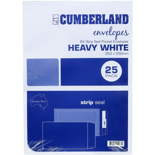 Cumberland B4 250x353mm White Heavy Strip Seal Envelopes
