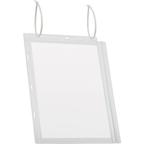 Water resistant, cable tie pockets for displaying notices or signs. The water proof pressure closure protects the contents against rain, humidity & dirt. Tested to IPX5 standards (can resist a sustained low pressure water jet spray). Can be used in portrait or landscape format. Anti-reflective.
