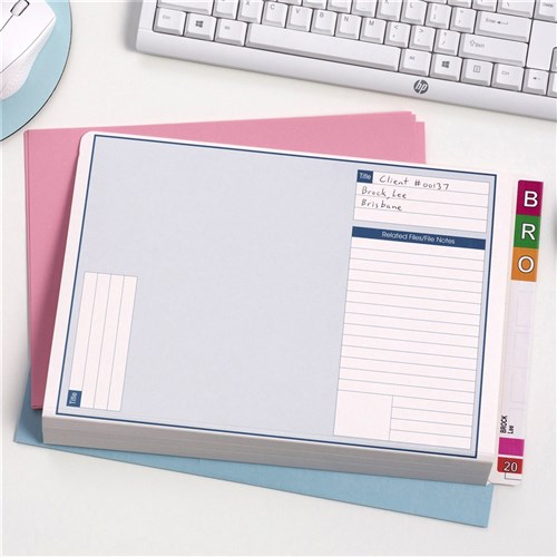 • Feature printed panels on the covers to enable notes and related file information to be noted directly onto the file.