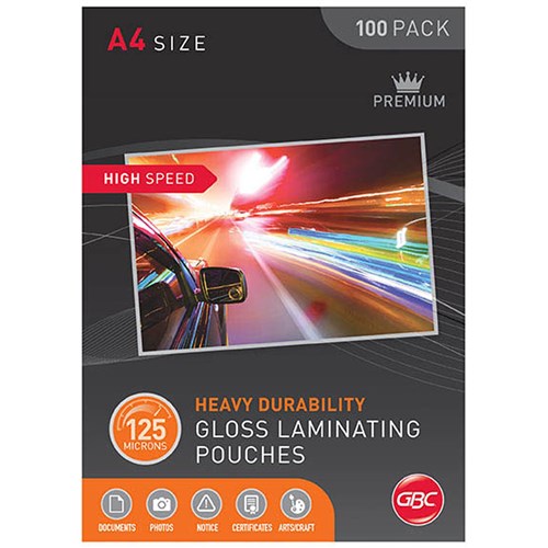 • GBC Laminating Pouches A4 125 Micron High Speed Pack of 100