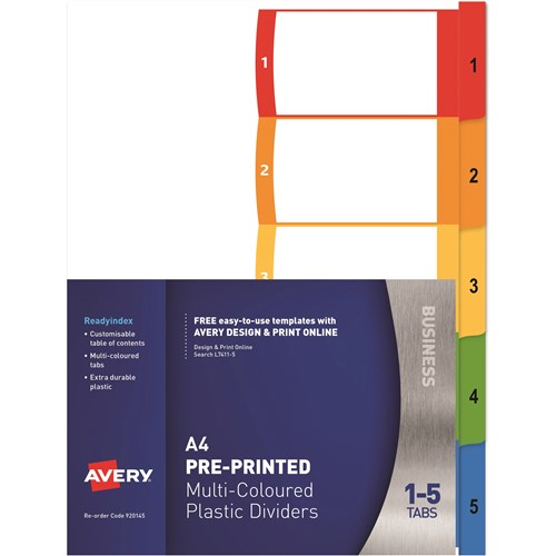 Indices A4 Polypropylene Avery Ready Index L7411-5 1-5