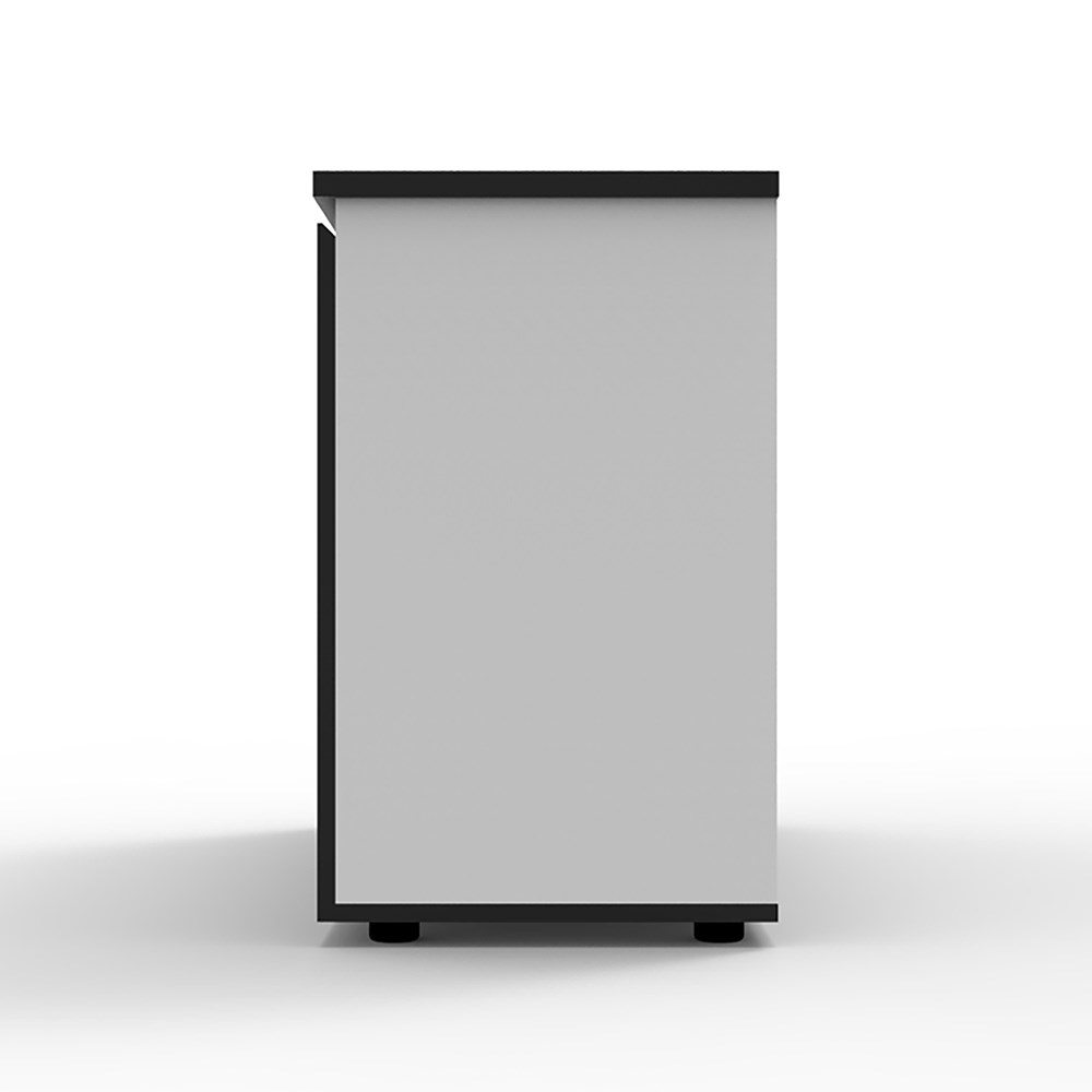 Deluxe Infinity Swing 3 Door Cupboard 1200mm W x 450mm D x 730mm H Shark Nose Feature On Top Door Front For Easy Opening Lockable, Supplied With 2 x Keys Finished In Laminate With Black Rigid Edging Adjustable Levelling Feet