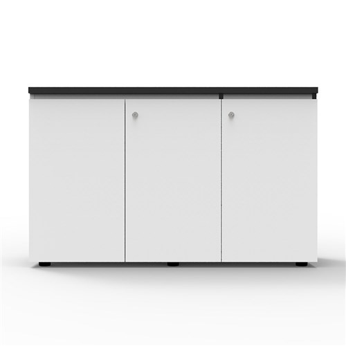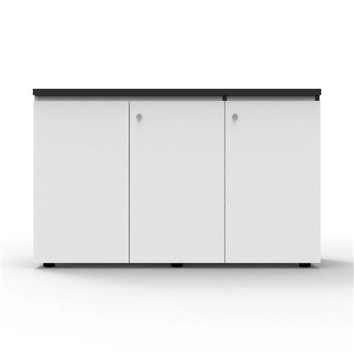 Infinity Swing 3 Door Storage Cupboard 730Hx1200Wx450mmD Natural White with Black Edge