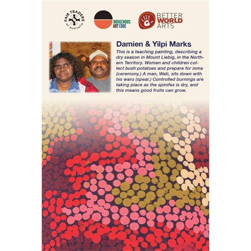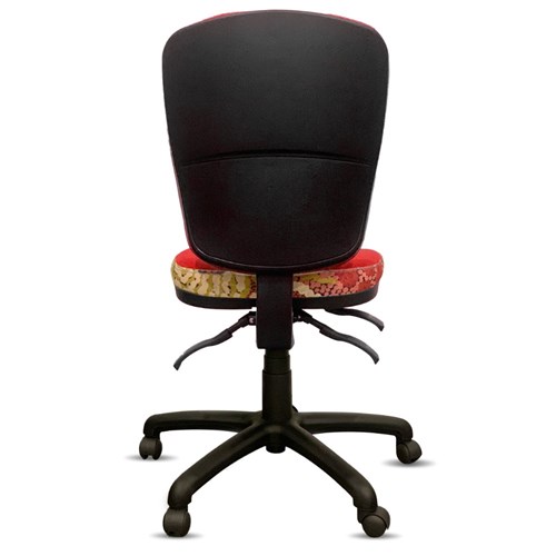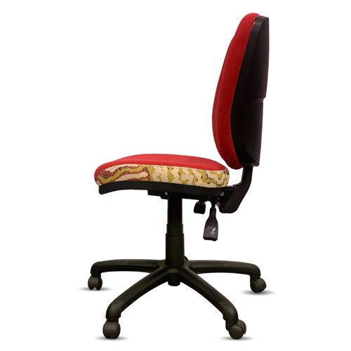 A unique commercial fabrics designed by Damien and Yilpi Marks (Indigenous artists) combined with K2 Red Ochre Fabric to upholster the chair. Weight rating: AFRDI Rated Load 160kg Approved. Indicated seat hours: 24/7. Seat Dimensions: 510W x 490D x 460-590mmH. Back Height: 560mmW. Back Width: 480mm. Heavy duty commercial chair with 3 lever mechanism and ratchet back height adjustment. 5 way 700mm commercial grade nylon base. Heavy duty gas lift cylinder. Moulded seat foam for supreme comfort. Fire retardant contoured moulded foam. Product image for reference only. Design pattern may differ as a result of variations in the art work. 10 Year Years Manufacturer's Warranty. Delivery, installation and assembly charges may apply to furniture. Please enquire to confirm. Optional adjustable armrest available. Refer to product code 3043352.