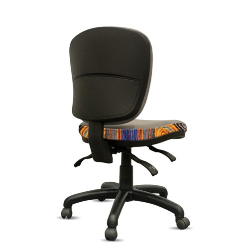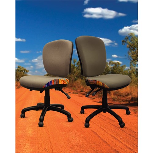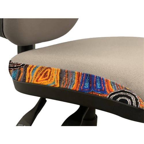 A unique commercial fabrics designed by Mary Napangardi Brown (Indigenous artist) combined with K2 Mist Grey Fabric to upholster the chair. Weight rating: AFRDI Rated Load 160kg Approved. Indicated seat hours: 24/7. Seat Dimensions: 510W x 490D x 460-590mmH. Back Height: 460mm. Back Width: 460mm. Heavy duty commercial chair with 3 lever mechanism and ratchet back height adjustment. 5 way 700mm commercial grade nylon base. Heavy duty gas lift cylinder. Moulded seat foam for supreme comfort. Fire retardant contoured moulded foam. Product image for reference only. Design pattern may differ as a result of variations in the art work. 10 Year Years Manufacturer's Warranty. Delivery, installation and assembly charges may apply to furniture. Please enquire to confirm. Optional adjustable armrest available. Refer to product code 3043352.