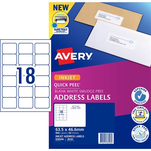 Label Inkjet Avery Address J8161 63.5X46.6mm 18 P/Page
