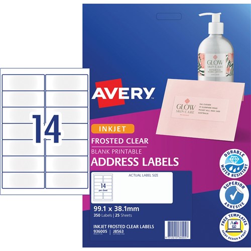Label Inkjet Avery Address J8563-25 Clear 99.1X38.1mm 14 P/Page