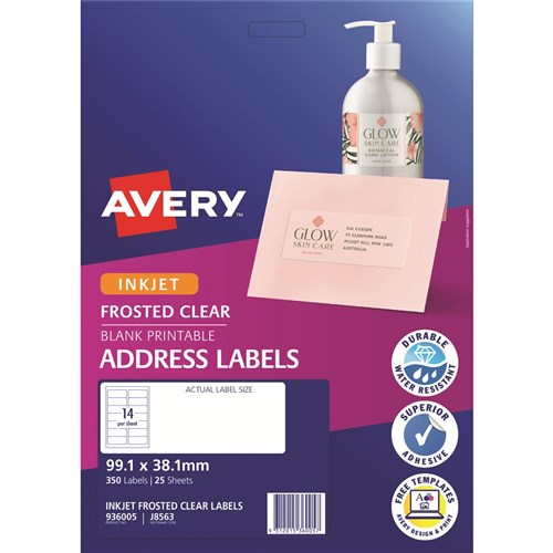 Avery Inkjet Frosted Clear Label 21UP 63.5x38.1mm 2324790 In Stock Low Stock Low Stock Please See Attributes