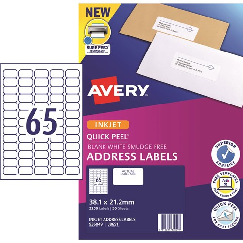 Label Inkjet Avery Mini Address J8651-50 38.1X21.2mm 65 P/Page