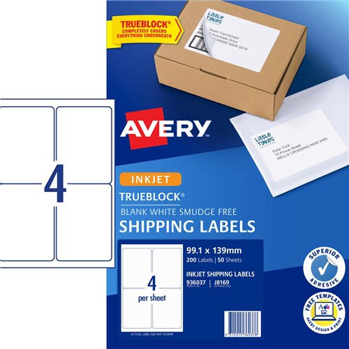 Label Inkjet Avery Parcel J8169-50 99.1X139mm 4 P/Page