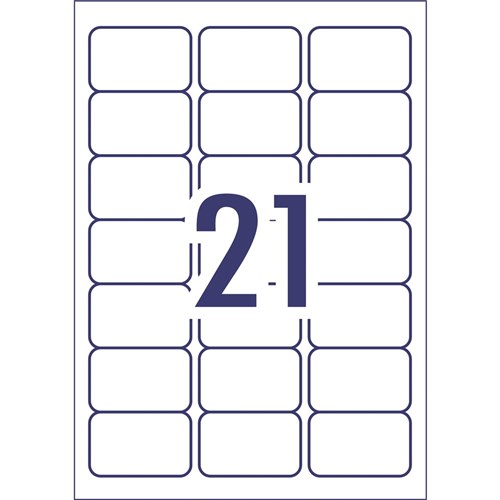 • Size: 63.5x38.1mm 2100 labels, 100 sheets. 21 labels per sheet (21UP).