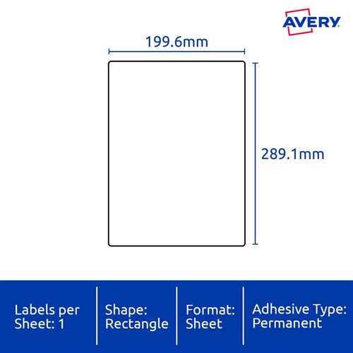 • Size: 199.6x289.1mm 25 labels, 25 sheets. 1 label per sheet (1UP).