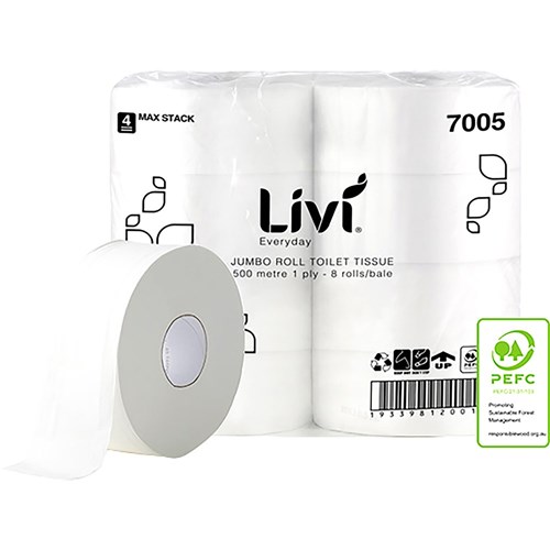 Livi Basics Toilet Paper Rolls 1 Ply Jumbo Roll 500m