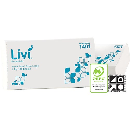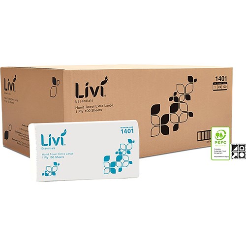 Livi Essentials Hand Towel Extra Large 1 Ply 100 Sheets