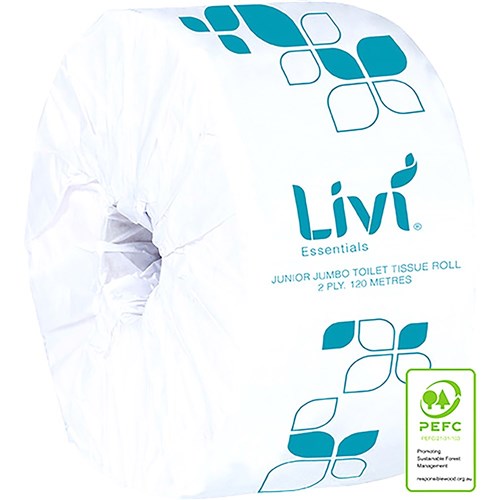 Livi Essentials Toilet Paper 2 Ply Junior Jumbo Roll 120m