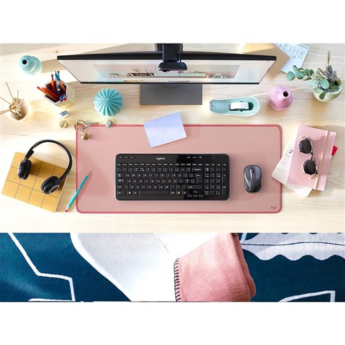 Dimensions: 300 x 700mm. Thickness: 2mm. Meet the accessory that takes your workspace to the next level, perfectly complementing your Logitech tools. Boost your space and protect your desk. The soft cloth mat delivers style and comfort. Logitech Desk Mat features a spill-proof coating that withstands accidental mishaps, so liquids can easily be wiped away. 100% Recycled Polyester. Anti-slip Base. 1 Year Manufacturer's Warranty.