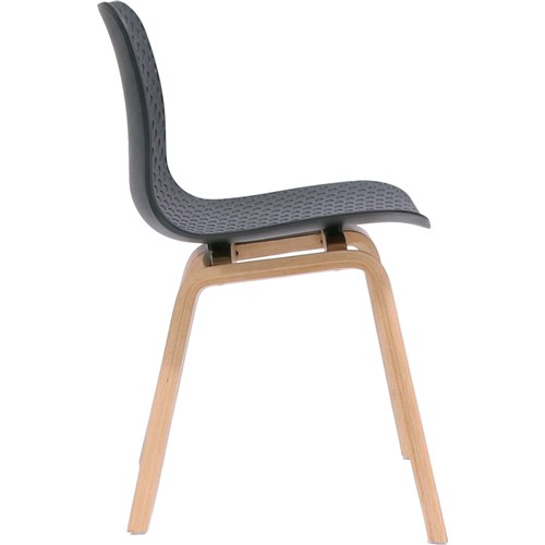 Lucid Meeting Visitor Chair Black Patterned Poly Shell Light Oak Timber 4 Leg Base