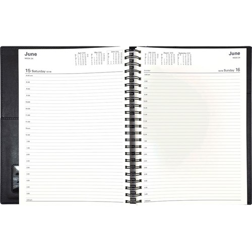 Flexible PVC cover management wiro diary, stitched edges and deluxe pocket inside the coverTwin wiro allows you to lay the diary flat on your deskIncludes Australian and New Zealand holidays and school terms, current and forward year planners, weights & measures plus much more.30 minute appointment 8am - 6pm
