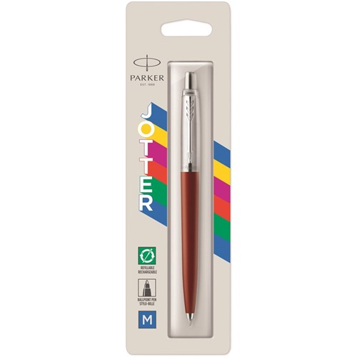 • Parker Jotter Originals Ballpoint Pen Red Barrel Stainless Clip Refill Blue