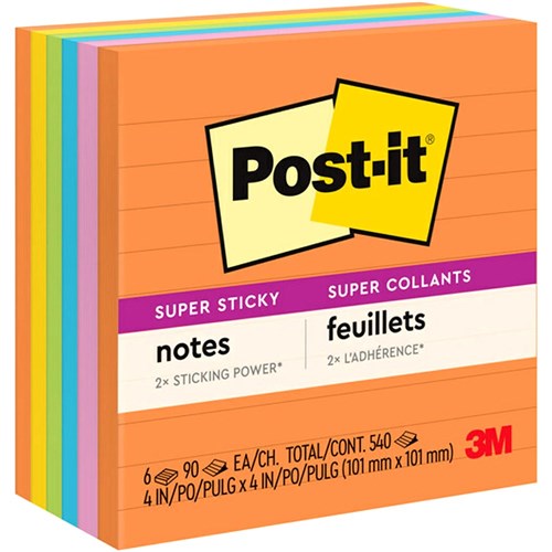 Post-It Ultra 675-6SSUC 98x98mm Super Sticky Lined Adhesive Notes