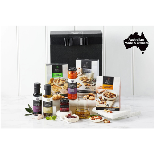 Each and every item inside our Epicurean Gourmet Delights gift hamper has been chosen to take your lucky recipient on a journey of gourmet flavour. They'll savour every mouthful of our premium Australian made foods, and we know they'll be smiling after every bite. The perfect food gift for entertainers, home cooks and of course foodies; every Random Harvest product is proudly Australian made using the finest of fresh produce. Crafted in small, artisan batches, we know that every product in our range is an Australian leader for quality. Inside the Epicurean Gourmet Delights Hamper they'll find: Quince Paste 60gRoasted Capsicum Tapenade 140gCaramelised Balsamic 100mlGarlic & Basil Olive Oil 100mlCheese Bites 100gChoc Chip Cookies 100gRoasted Peanuts with Sea Salt 120gHamper Box