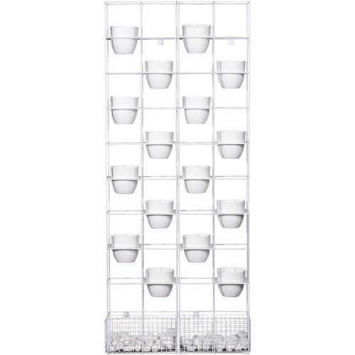Rapid Bloom Vertical Garden White Includes 8 x 150mm Dia White Pots and 20Kgs Of Polished White Stones Manufactured With Concealed Wall & Floor Mounting provisions Plants Not Included