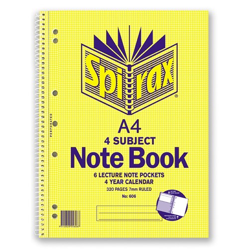 Spirax 606 4 Subject A4 320pg Notebook