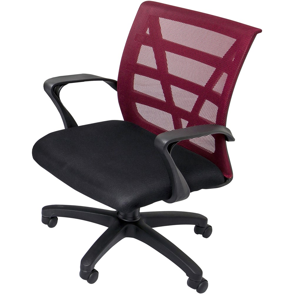 • Vienna Mesh Medium Back Office Chair With Arms Black Fabric Seat Red Mesh Back
