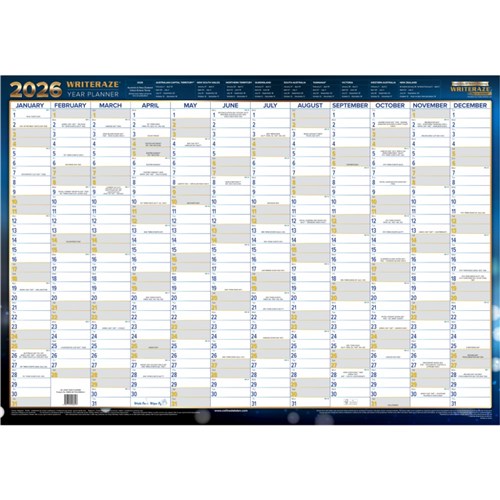 Writeraze 2026 QC2 500x700mm Executive Laminated Year Planner 527348 In Stock Low Stock Low Stock Please See Attributes