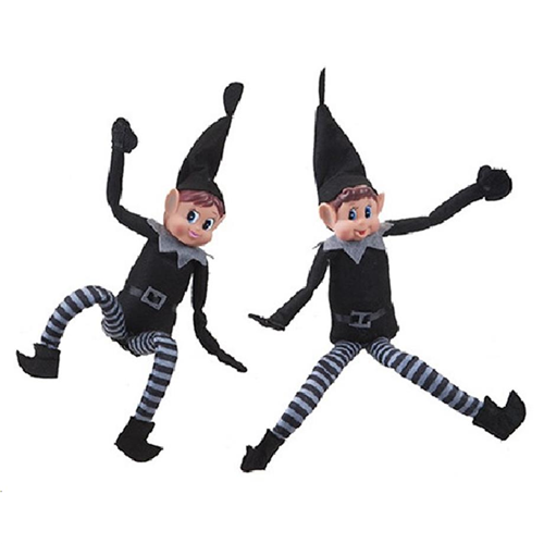 Xmas 39cm Black Bendable Elf With Soft Body Vinyl Face Assorted
