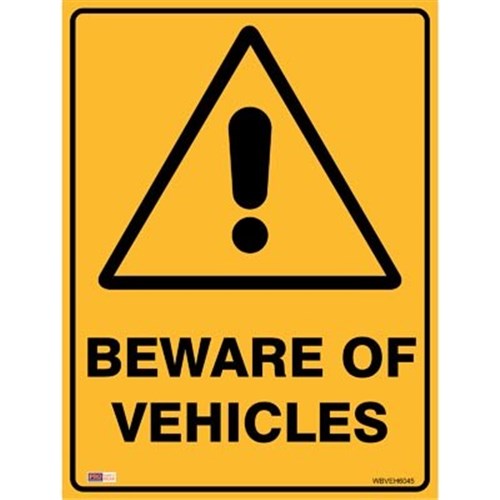 Zions Beware Of Vehicles 45x60cm Metal Warning Sign
