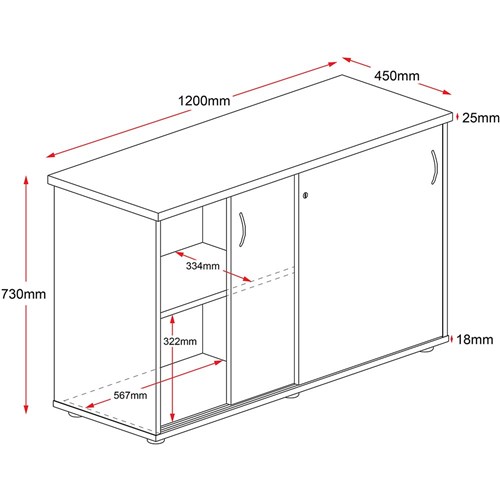 Rapid Worker Credenza Sliding Doors 730Hx1200Wx450D Cherry and Ironstone 502307 In Stock Low Stock Low Stock Please See Attributes
