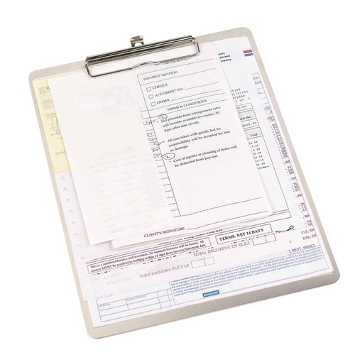 • Chrome plated lever clip snaps into place securing your paperwork.