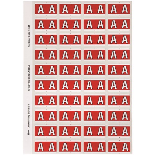Avery Alphabet Coding Label A Side Tab 25x42mm Red