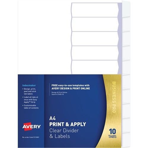 Avery L7455-10 A4 10 Tab Print & Apply Label Clear Dividers 494588 In Stock Low Stock Low Stock Please See Attributes