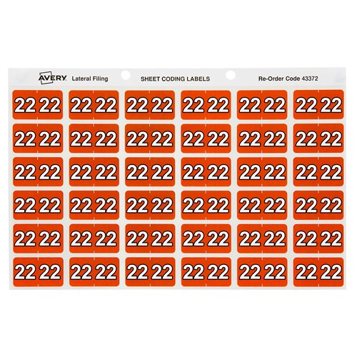 Avery Side Tab 22 Year Code Label 25x38mm Dark Orange Pack of 180