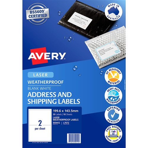 Avery Weather Proof Shipping Laser Labels 199.6 X 289.1mm White 2195235 In Stock Low Stock Low Stock Please See Attributes
