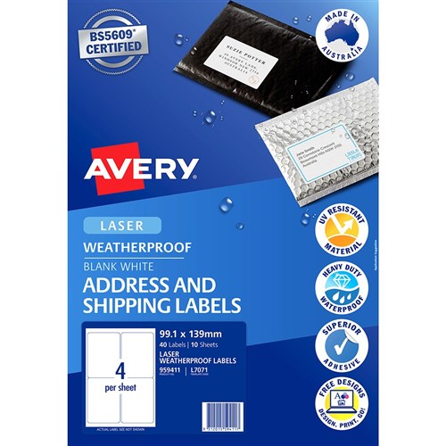 Avery Weather Proof Shipping Laser Labels 199.6 X 143.5mm White 2195236 In Stock Low Stock Low Stock Please See Attributes