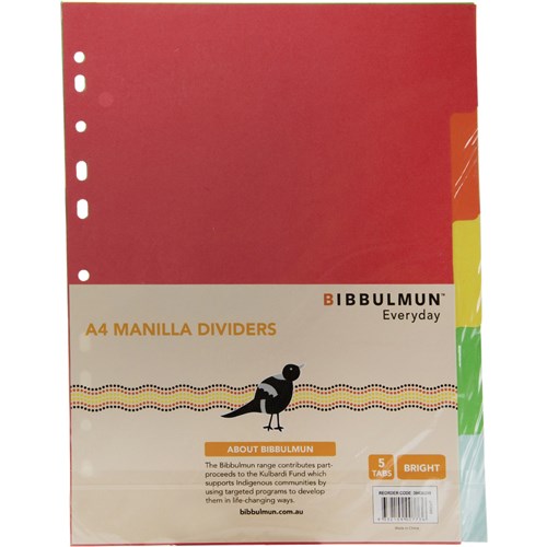Bibbulmun A4 5 Tab Bright Multi-Coloured Board Dividers