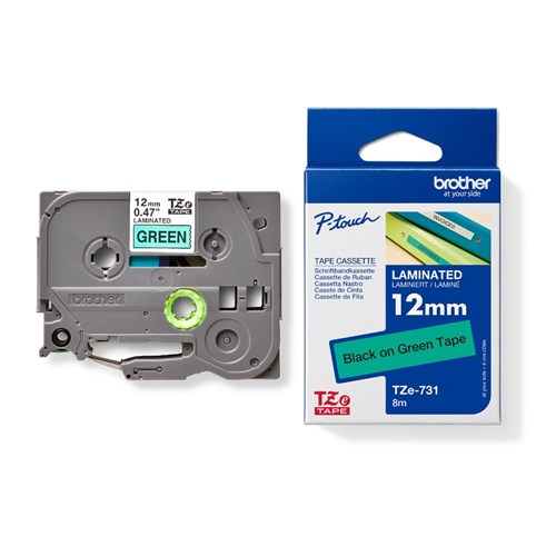 Brother P-Touch Tze-731 12mm Black/Green Label Tape