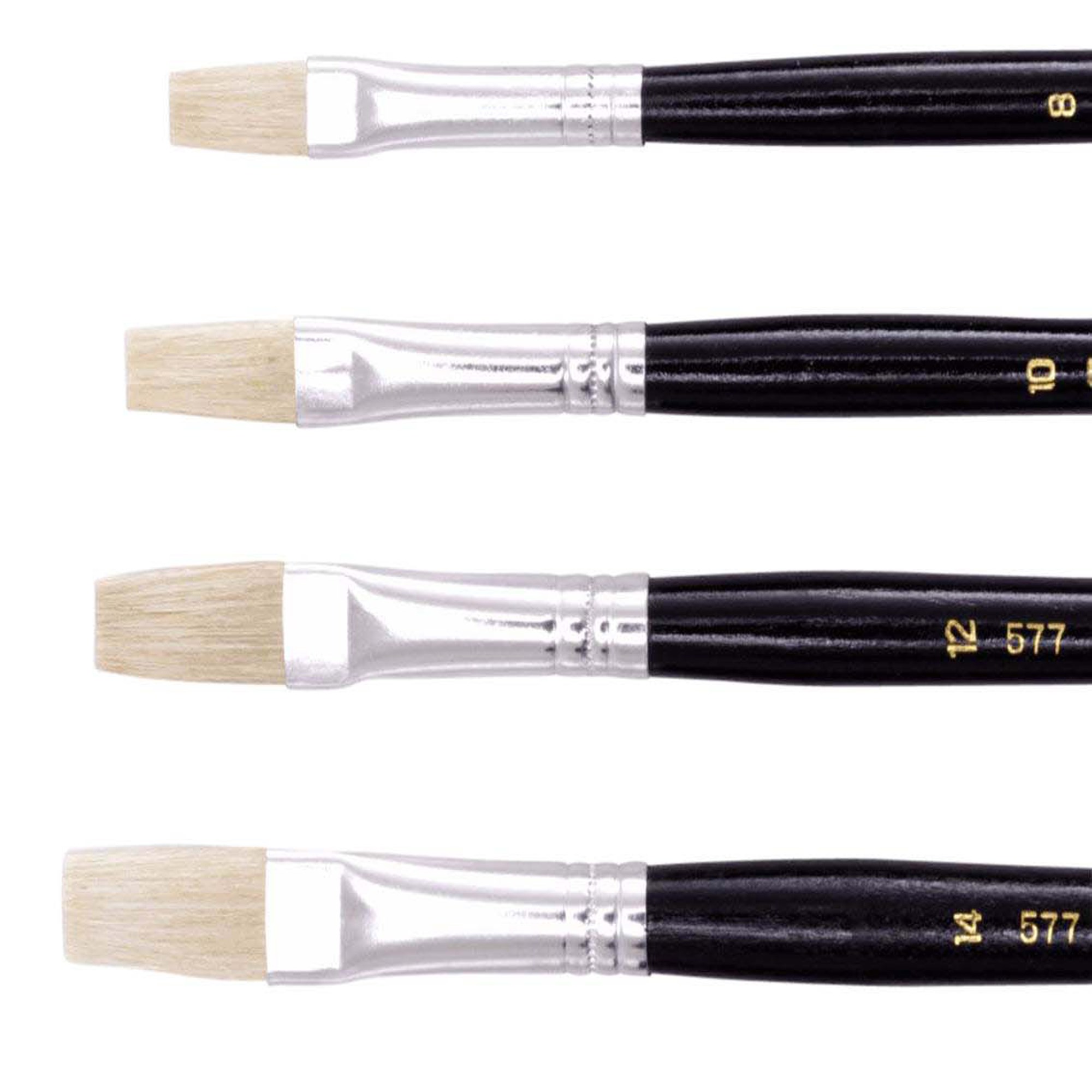 • Economical flat artist brush made from pure soft Chinese hog bristle.