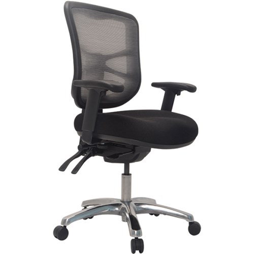 • Buro Metro Mesh Chair Polished Alloy Base Seat Slide With Arms Black Fabric Seat